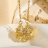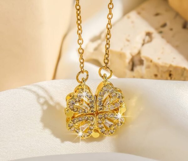 Korean Magnetic 4 Leaf Clover Pendant Necklace- Golden